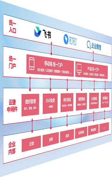 对协作平台提供支持服务,,,支持企业应用与协作平台对接,,,包含组织同步、、、消息集成、、待办集成等。。。支持目前主流的协作平台:钉钉、、、企微和飞书。。。。